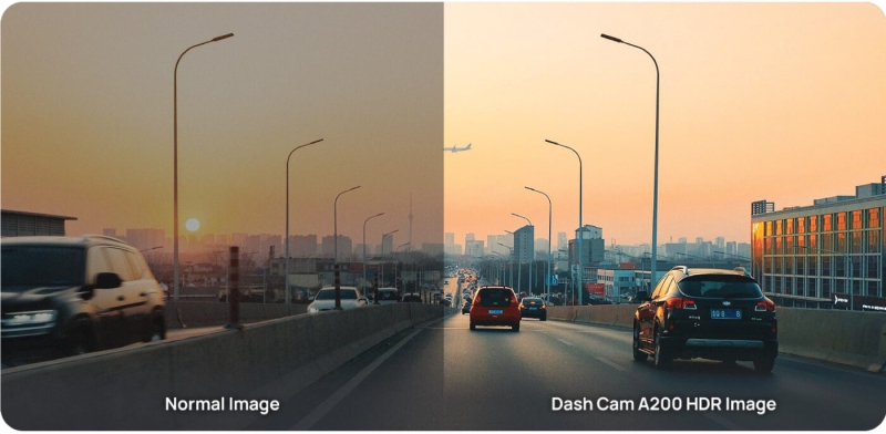 Công nghệ HDR, được hỗ trợ bởi thuật toán độc quyền MaiColor Vivid+ Solution™ của 70mai, đảm bảo các chuyển đổi ánh sáng mượt mà hơn và cải thiện đáng kể khả năng ghi hình đặc biệt trong các trường hợp quan trọng như bắt biển báo giao thông và biển số xe. Trong các điều kiện ánh sáng yếu, chẳng hạn như trong đường hầm tối và các tình huống có độ tương phản cao, A200 thể hiện khả năng ghi hình vượt trội.