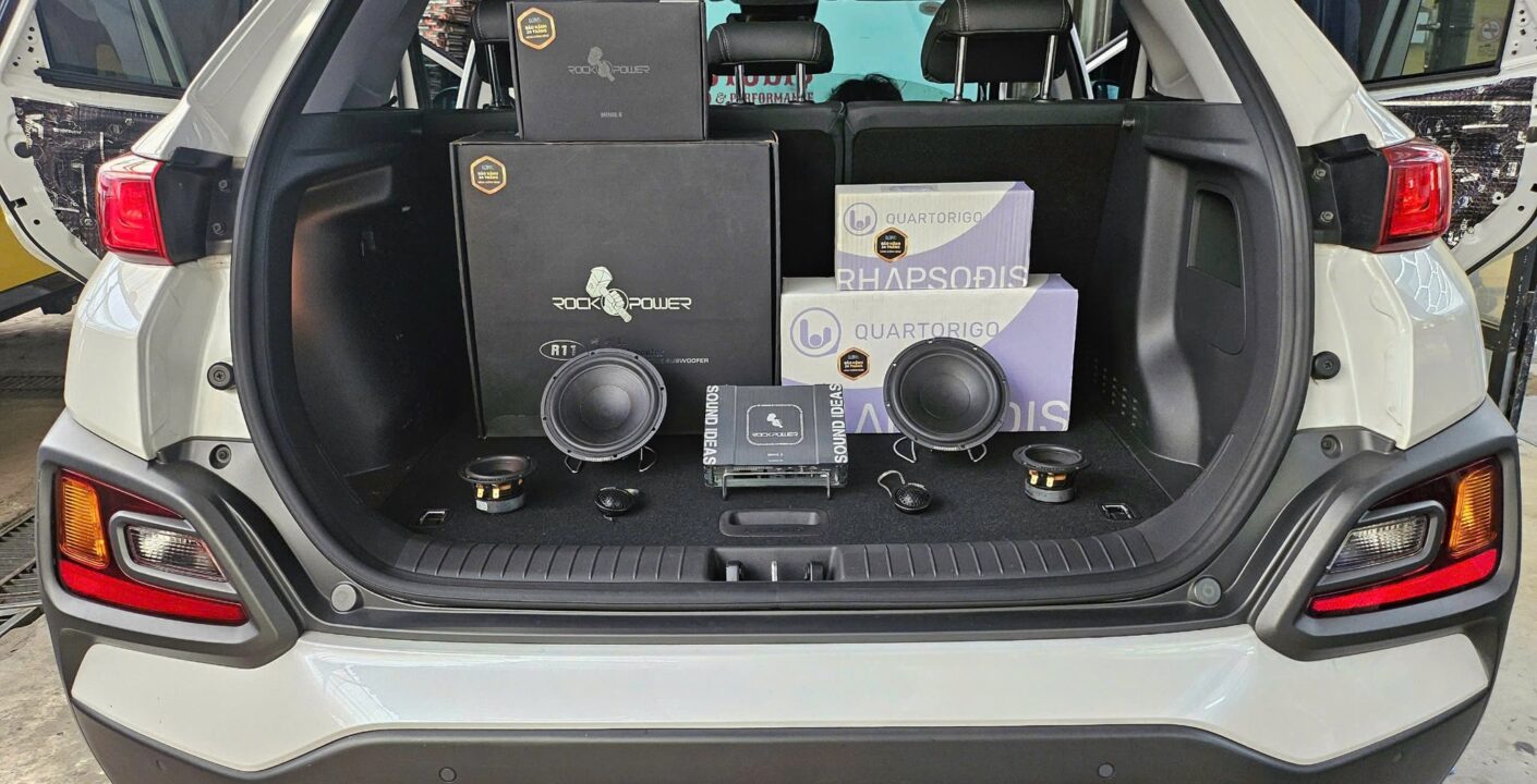 Tùy vào nhu cầu trải nghiệm và ngân sách đầu tư, người chơi âm thanh có thể lựa chọn cấu hình nâng cấp phù hợp cho chiếc xe của mình. Với Hyundai Kona này, khi chủ xe chủ yếu ngồi ở hàng ghế trước và đặt mức chi phí dưới 50 triệu đồng, Autobis đã tư vấn cấu hình tối ưu, bộ loa 3way Quartorigo Rhapsodis chất lượng cao cho cửa trước, kèm sub điện đặt dưới gầm ghế và một bộ xử lý âm thanh (DSP) để mang lại âm trường rộng, dải trung rõ nét và tiếng bass sâu chắc.