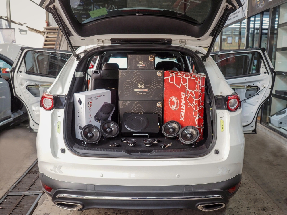 Hệ thống âm thanh nguyên bản trên Mazda CX-8 đời 2022 được trang bị 10 loa với 9 loa cánh và 1 loa sub được thiết kế để phục vụ nhu cầu giải trí cơ bản, với dàn loa trải đều khắp khoang xe . Tuy nhiên, chất âm trong trạng thái nguyên bản thường thiên về tổng thể an toàn, dễ nghe, chưa thể đáp ứng được mong muốn của những người chơi nhạc khó tính. Dải trầm, trung và cao chưa thực sự chi tiết, tách bạch, âm hình chưa rộng và sâu. Vì vậy, nhiều chủ xe lựa chọn nâng cấp loa và xử lý hệ thống âm thanh để cải thiện độ chi tiết, âm sân khấu và trải nghiệm nghe tổng thể – giúp âm nhạc sống động, trung thực và giàu cảm xúc hơn.