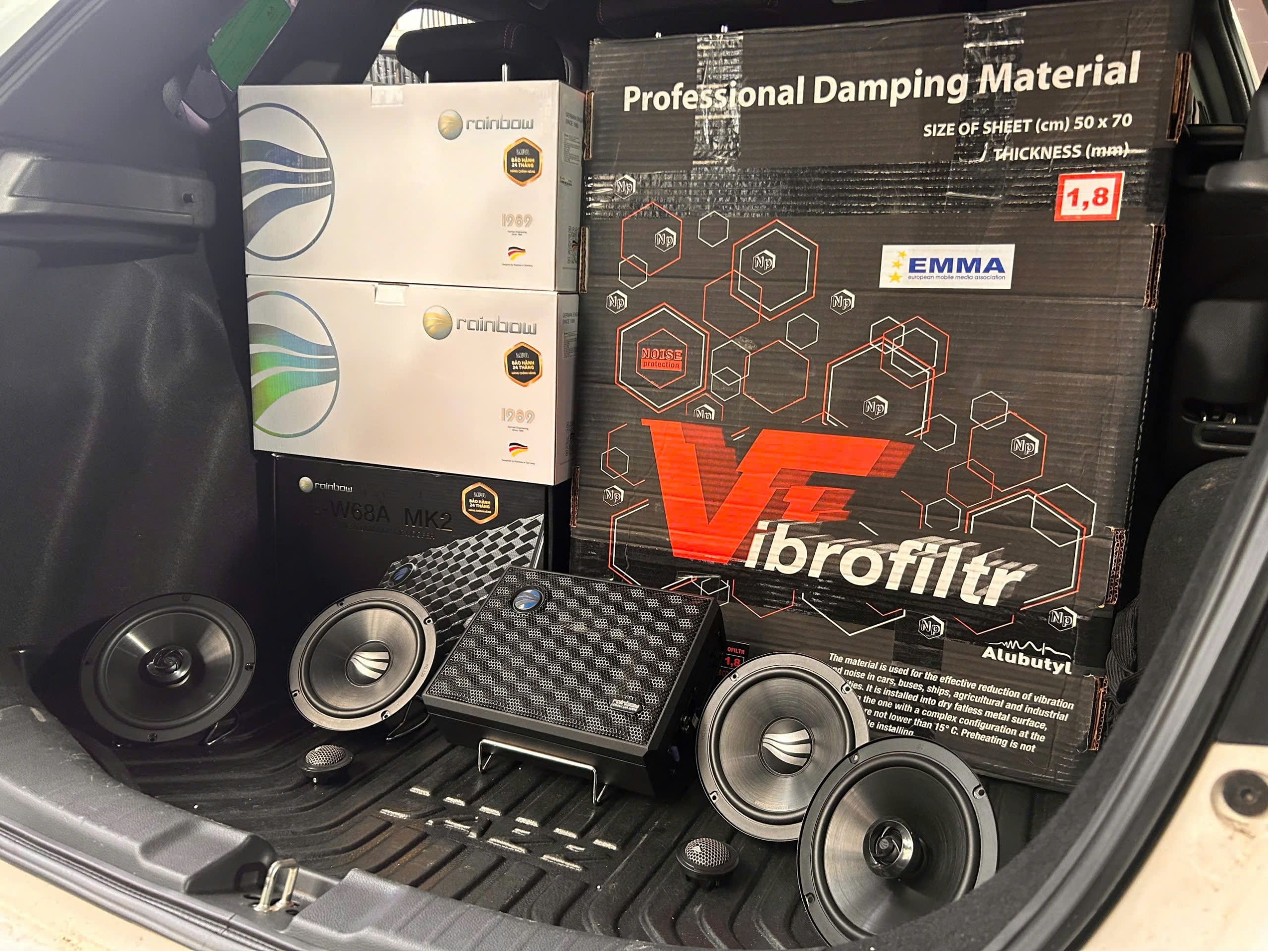 – Cấu hình lựa chọn cho xe Honda Jazz là sản phẩm loa Rainbow, thương hiệu âm thanh đến từ Đức.