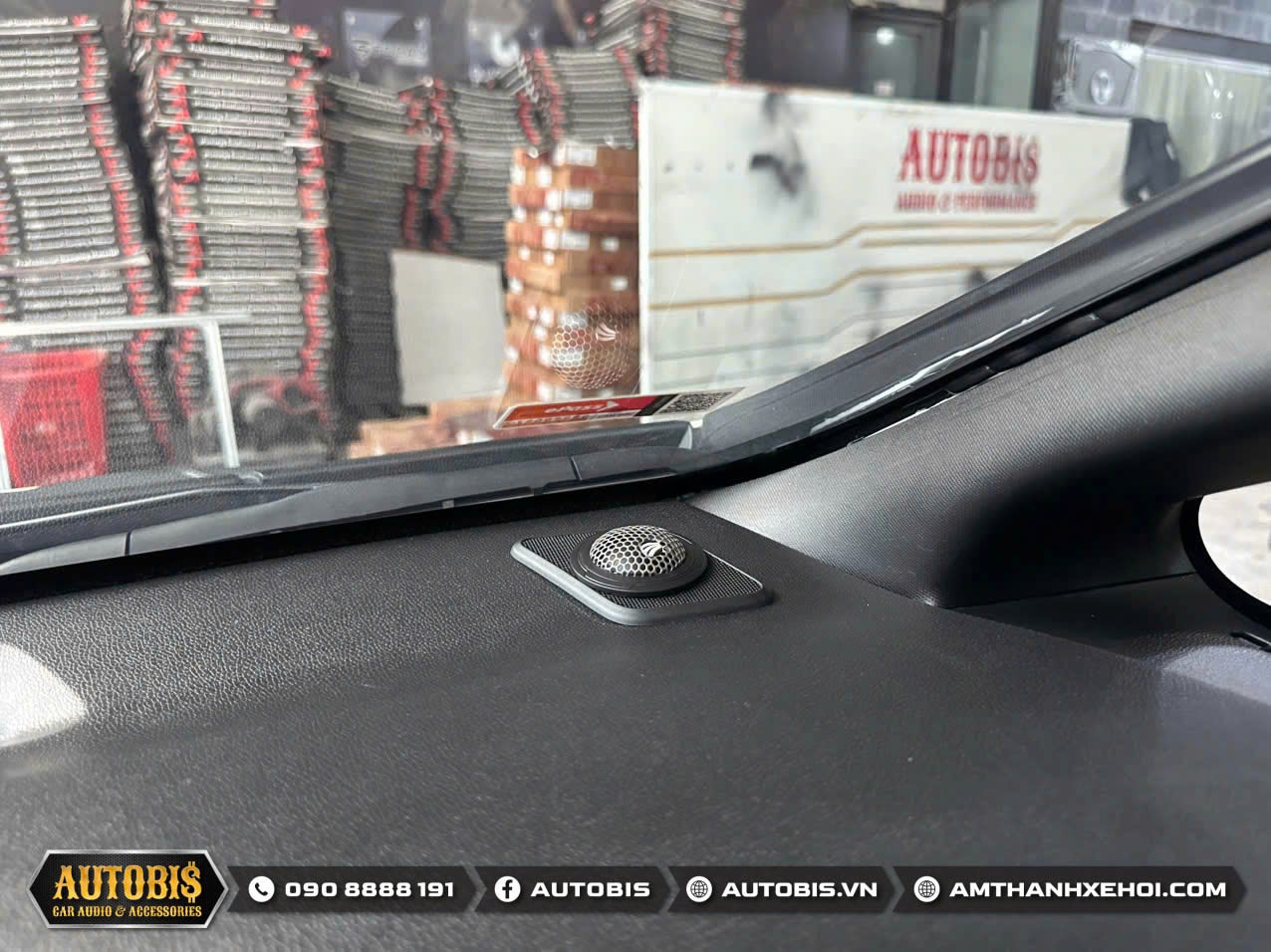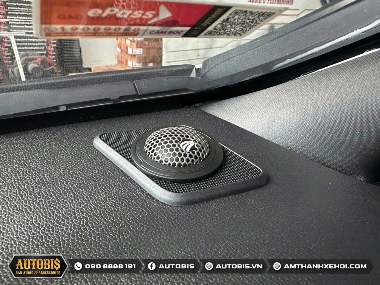 Loa treble lắp đặt vào vị trí zin, để tiếng treble được thoáng hơn chủ xe đã lựa chọn thi công để lộ ra ngoài.