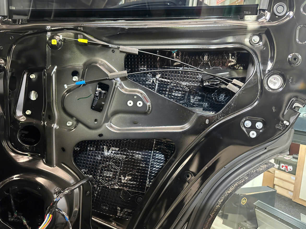 Cách âm cho Pajero Sport: Là một mẫu SUV gầm cao nên Pajero Sport vốn đã cách âm khá tốt. Tuy nhiên, để tối ưu trải nghiệm âm nhạc trong xe, việc cách âm bổ sung cho 4 cánh cửa là hoàn toàn cần thiết giúp hạn chế tạp âm bên ngoài và tạo không gian nghe trong trẻo, yên tĩnh hơn.
