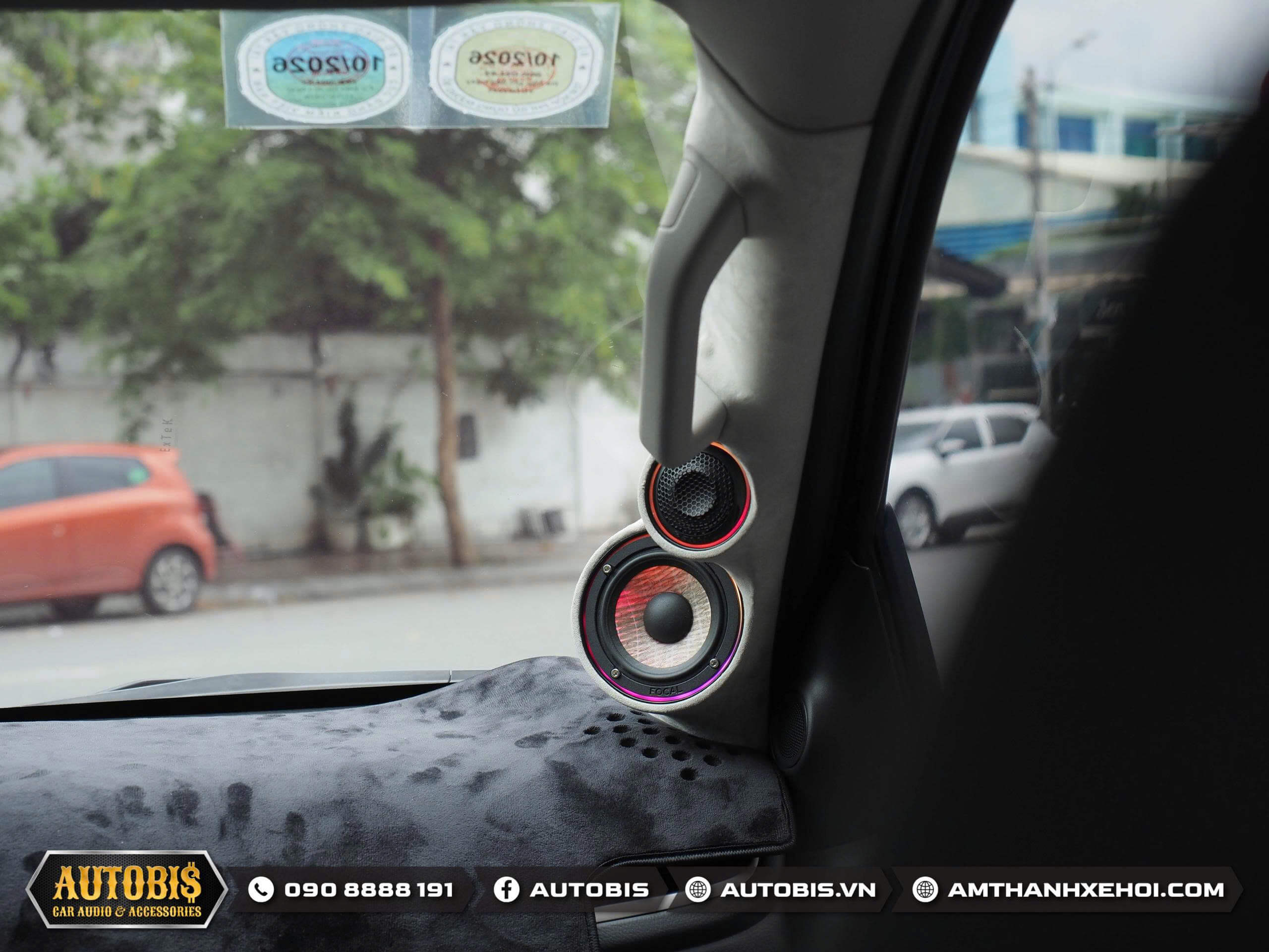 Loa Bass được lắp vào vị trí zin trên cửa, loa Mid, Treble được chế tác lắp vào cột A