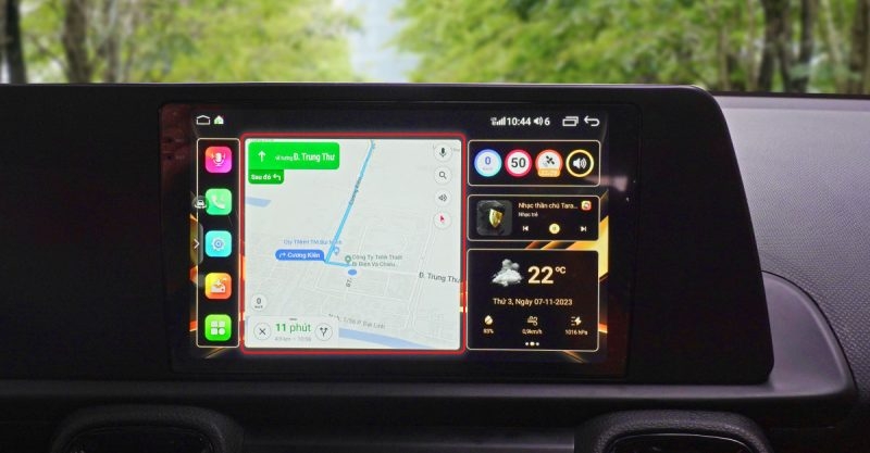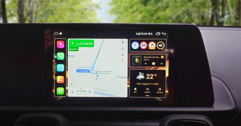 Chỉ cần ấn đúp vào Widget Cảnh báo áp suất lốp, hệ thống sẽ đẩy sang Widget thời tiết hoặc các ứng dụng khác mà người dùng muốn hiển thị trên màn hình chính Elligo Gold vô cùng tiện ích.
