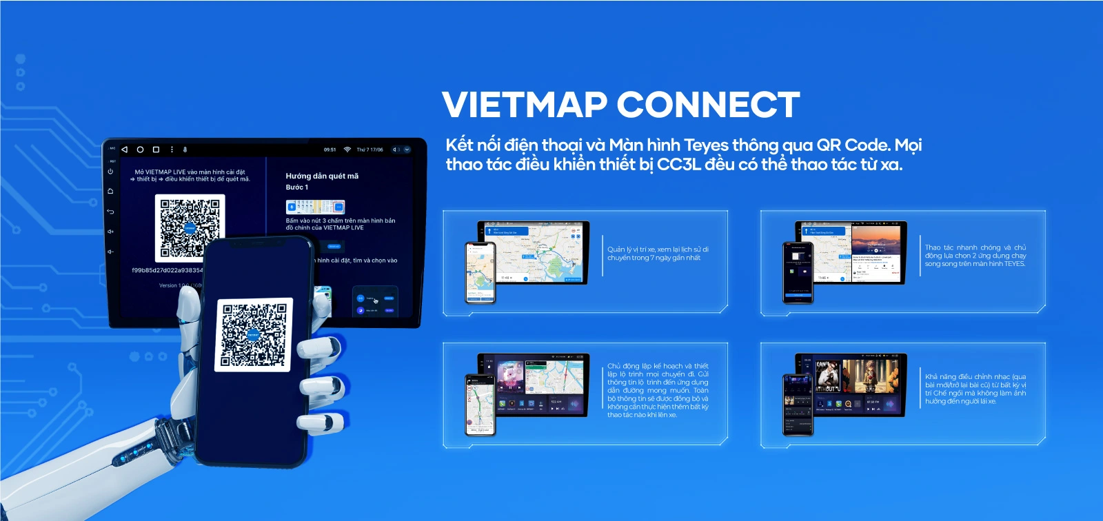 Với ứng dụng VIETMAP Connect, người dùng có thể dễ dàng điều khiển màn hình CC3L Lite từ xa thông qua điện thoại thông minh. Các tính năng nổi bật bao gồm tạo dẫn đường từ xa, xem lại lịch sử di chuyển và điều chỉnh âm nhạc. Điều này mang lại sự tiện lợi tối đa, đặc biệt cho hành khách ở hàng ghế sau khi họ có thể chủ động lựa chọn nội dung giải trí mà không cần làm phiền người lái. Khả năng kết nối và điều khiển từ xa này thể hiện sự quan tâm đến trải nghiệm toàn diện của mọi người trên xe.