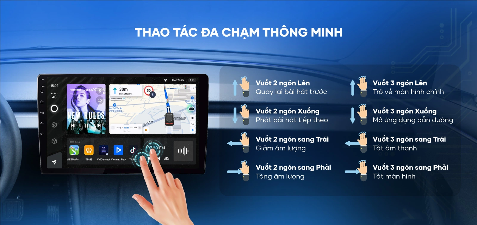 CC3L Lite được trang bị tính năng điều khiển bằng cử chỉ đa chạm thông minh, cho phép người dùng thao tác nhanh chóng và tiện lợi mà không cần nhìn vào màn hình. Các cử chỉ chạm vuốt thông minh giúp tăng tốc độ thao tác, mang lại trải nghiệm người dùng mượt mà và góp phần giúp người lái tập trung hơn vào việc lái xe. Công nghệ này không chỉ nâng cao tính hiện đại mà còn thể hiện sự chú trọng đến yếu tố an toàn khi lái xe.