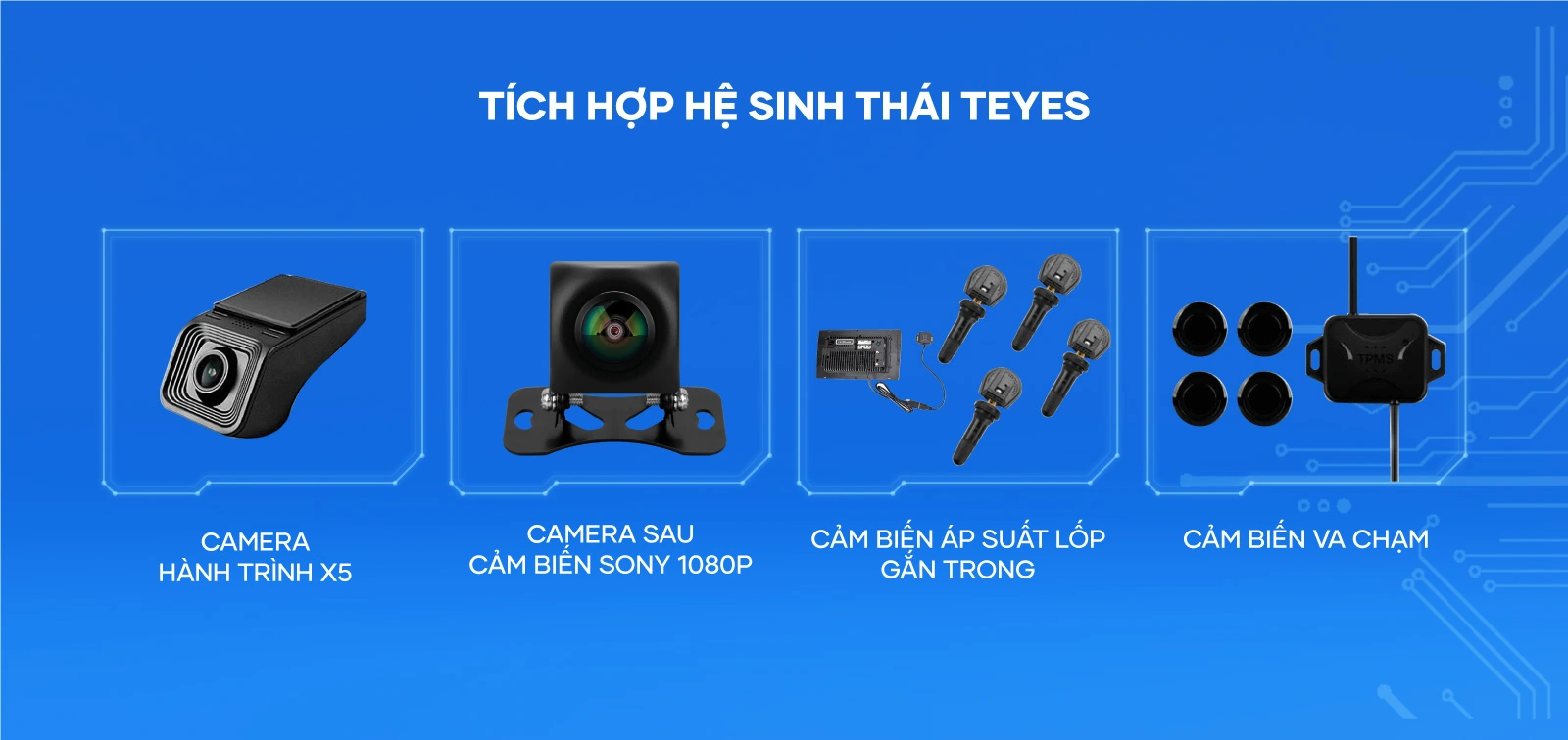 | Hỗ trợ phụ kiện TEYES | Có (Camera hành trình X5, TPMS, cảm biến va chạm R1/R2) |