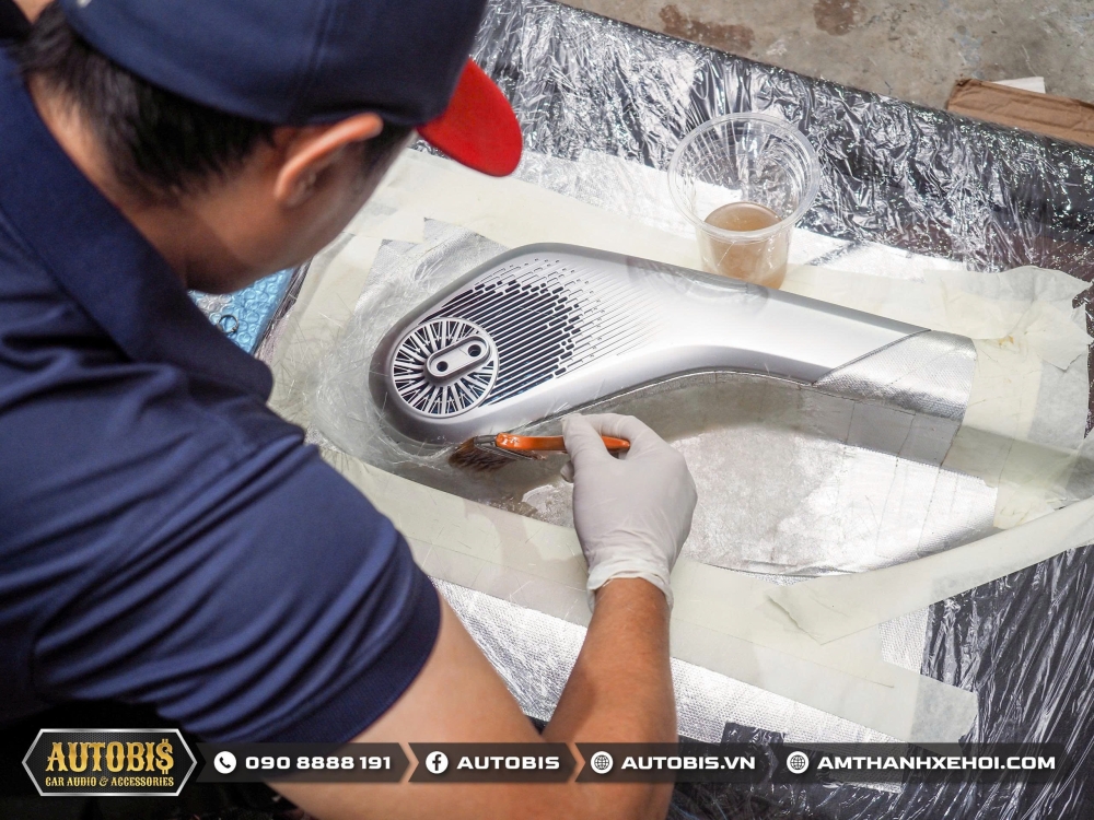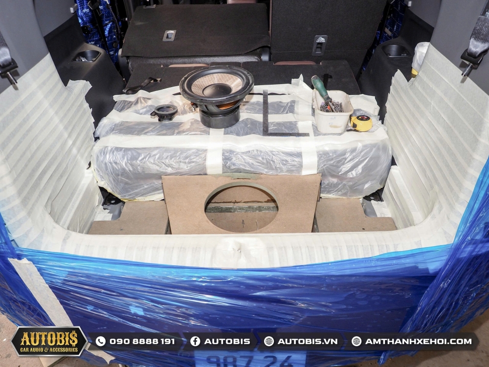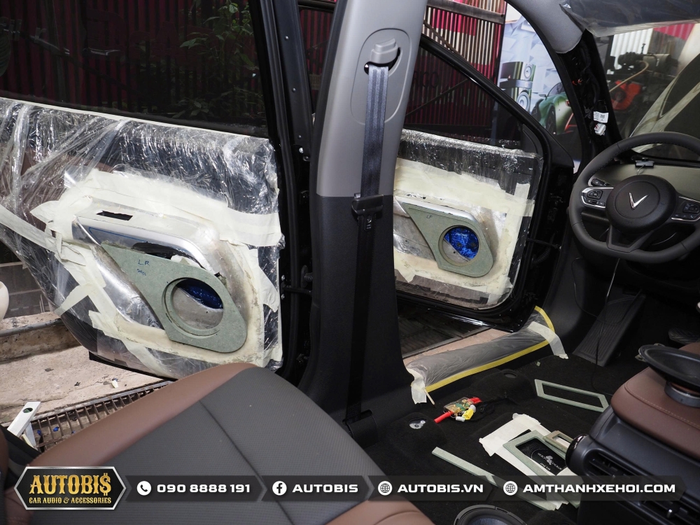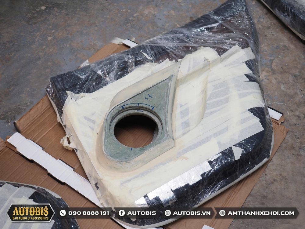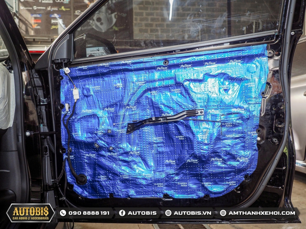 Trước khi đến phần âm thanh Autobis luôn khuyến khích chủ xe thi công cách âm cho xe để không gian xe được tối ưu khi sử dụng âm thanh và vật liệu cách âm cửa lần này sử dụng thương hiệu cách âm Dr.ARTEX