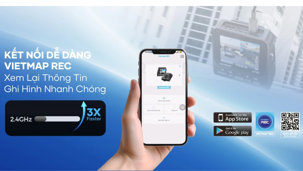 Đồng thời kết nối với VIETMAP REC chỉ với 1 chạm, giúp việc xem lại, trích xuất video, cập nhật dữ liệu cảnh báo trực tiếp nhanh chóng và tiện lợi.
