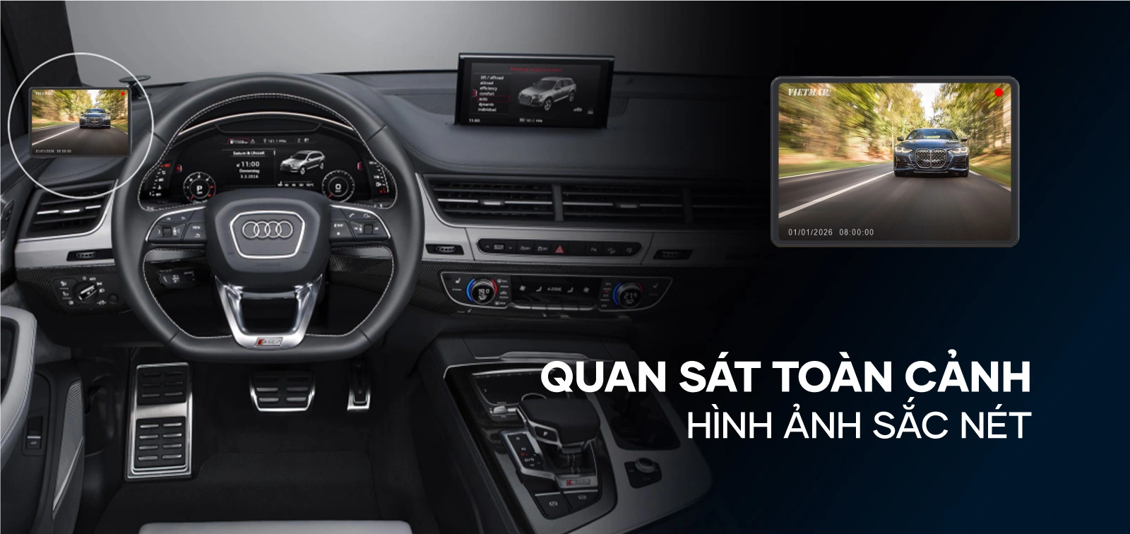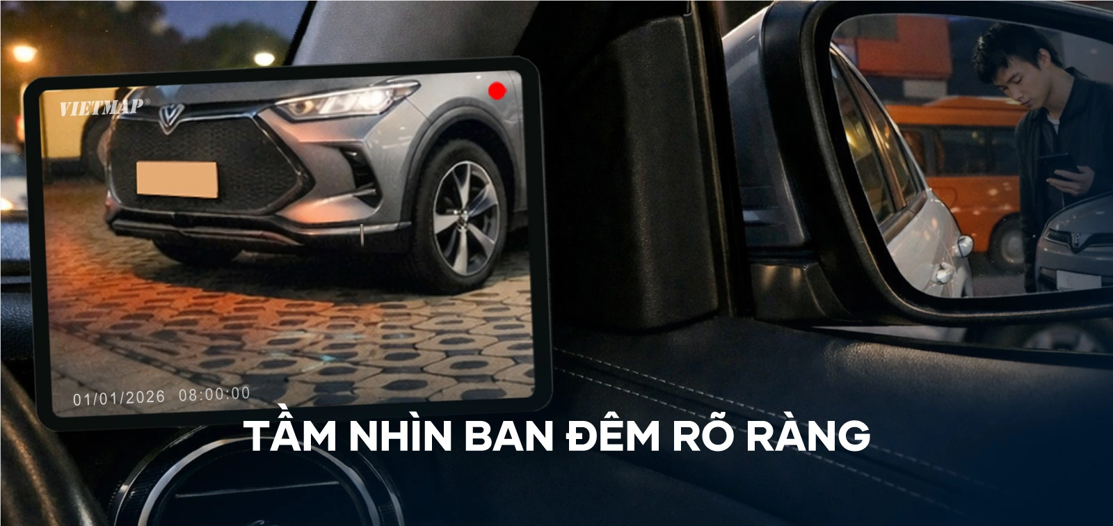 VIETMAP SC620 vừa giúp quan sát toàn cảnh, vừa ghi lại hình ảnh đồng thời cả hai bên hông xe, giúp bạn luôn yên tâm trong mọi tình huống lái xe trên đường.