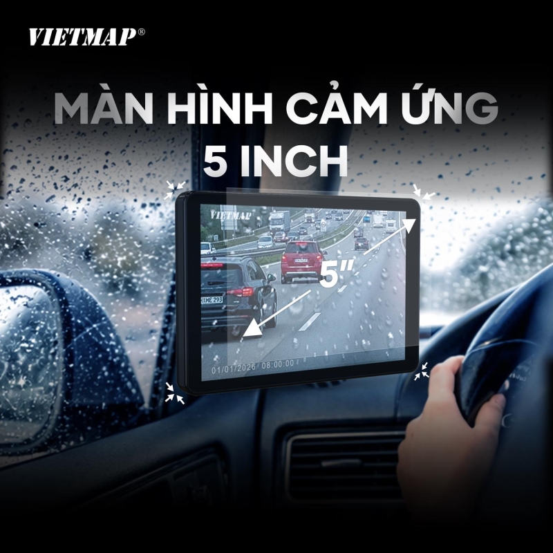 VIETMAP SC620 trang bị màn hình 5 inch sắc nét kết hợp với camera độ phân giải Full HD 1080P đem lại trải nghiệm quan sát chân thực, hình ảnh hiển thị sắc nét và hoàn toàn không có độ trễ giúp tài xế nhận diện tình huống và phản ứng chính xác.